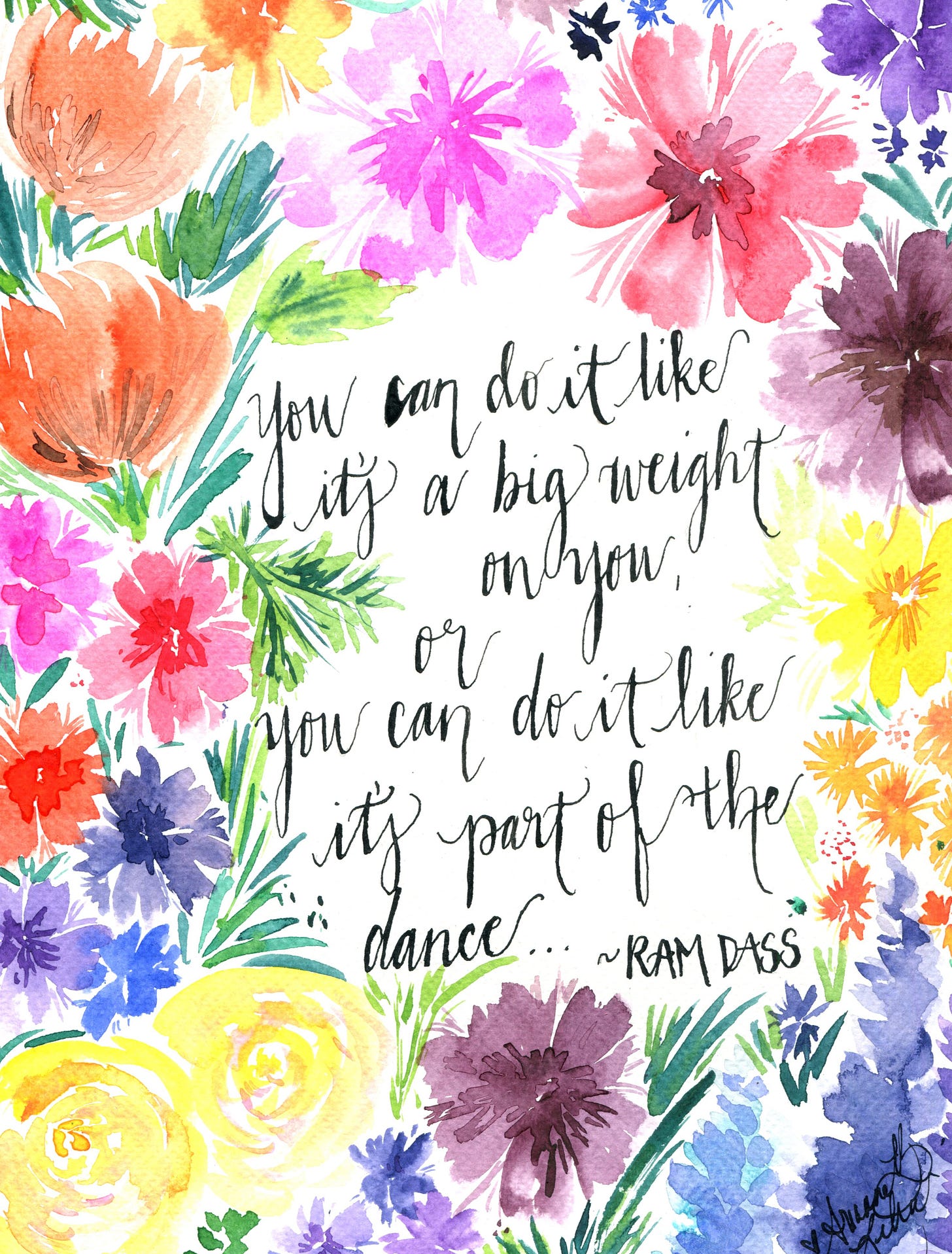 My 2025 word last year was LIGHTLY, and as I hold that word up to the kind of year we had in 2025, it almost feels laughable. And yet, that is exactly the grace of this word-gift from the Spirit. There was so much in the world that was heavy and hard, but the call and guidance from God to live “lightly” felt like a preserver holding me up in the water. There were some big things for me personally this year — turning forty, launching my Etsy site, and having my first art show — and yet all of those things were lessons for me in the call to hold things lightly. This is the opposite of control (which is most often what I try to do). I came back many times to this quote from Ram Dass…