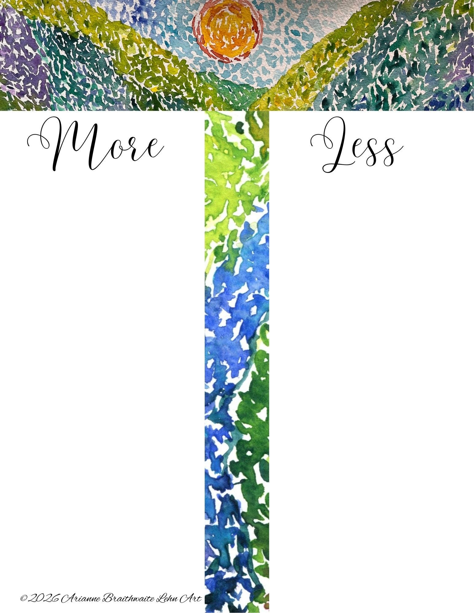 *One last “list” thing, but another one that really helped me. I did some writing on what I want MORE of this year, and what I want LESS of. As my little gift to you, I made a simple watercolor download you can print out and use as your own list. (Thank you Erin Gleeson for the great idea).