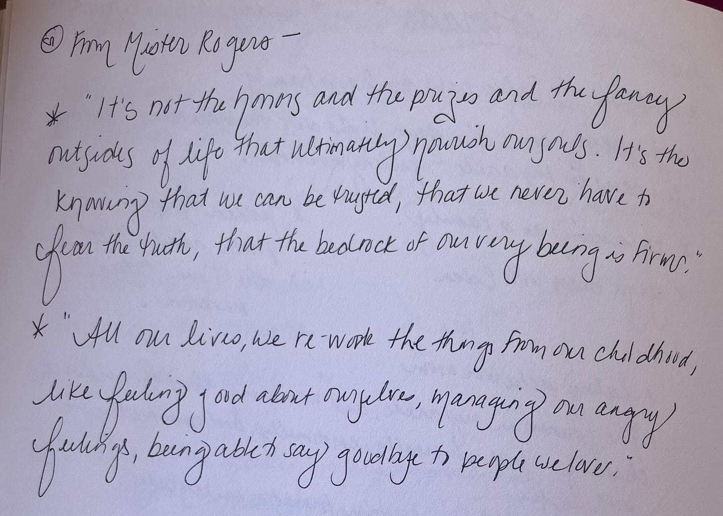 *I read these quotes from Mister Rogers last month and copied them down into my journal. I returned to them again the other day…Thank you, God, for Mister Rogers.